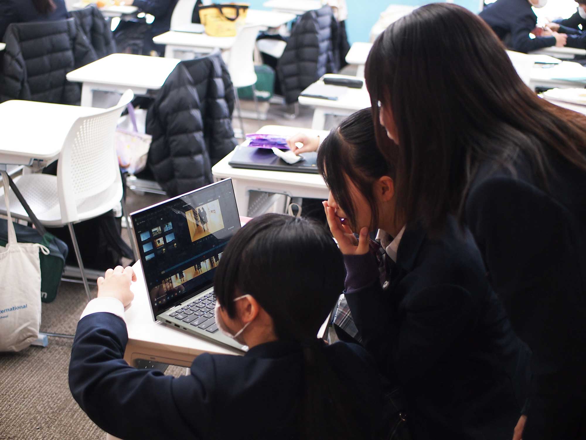 「約半年間かけて四〜六人のグループで写真や動画を撮影し、曲を選んで編集を行いました。テーマに合う写真や動画を考えながら撮影をすることは簡単ではなく、特に最初はカメラの操作に慣れていなかったため、思うように撮ることができませんでした。しかし、何度も練習を重ねるうちに少しずつ上達し、構図や明るさを工夫しながら撮影できるようになりました。その結果、撮影すること自体がとても楽しく感じられるようになりました。編集作業では、パソコンの使い方や動画の編集方法など、さまざまなことを学びました。そして最後に各班で作った動画をみんなの前で発表しました。発表するときはとても緊張しましたが、完成した動画を見てもらい、拍手をもらったときは大きな達成感を感じました。この活動を通して、協力することの大切さや新しい技術を身につける喜びを実感することができました。」