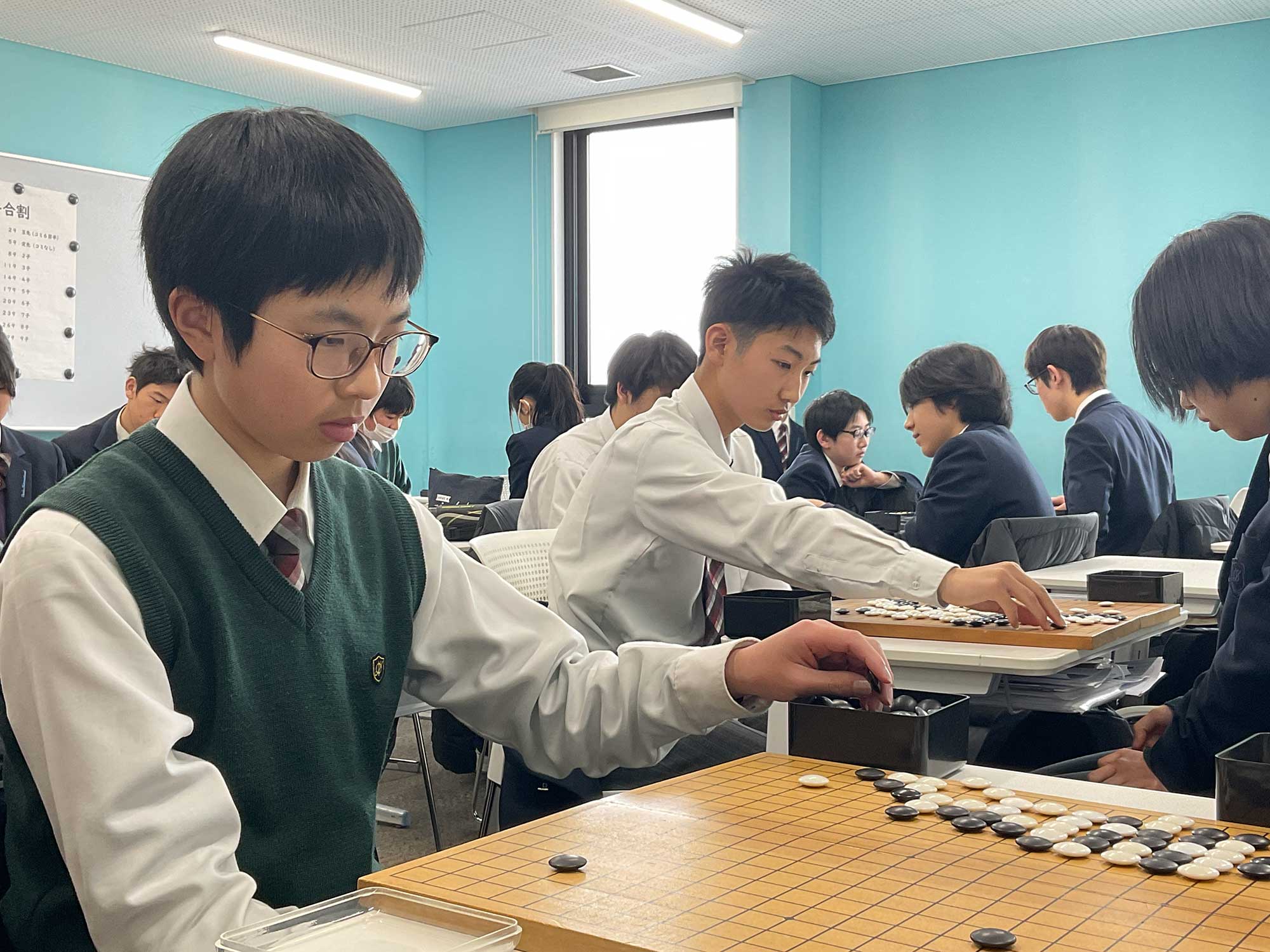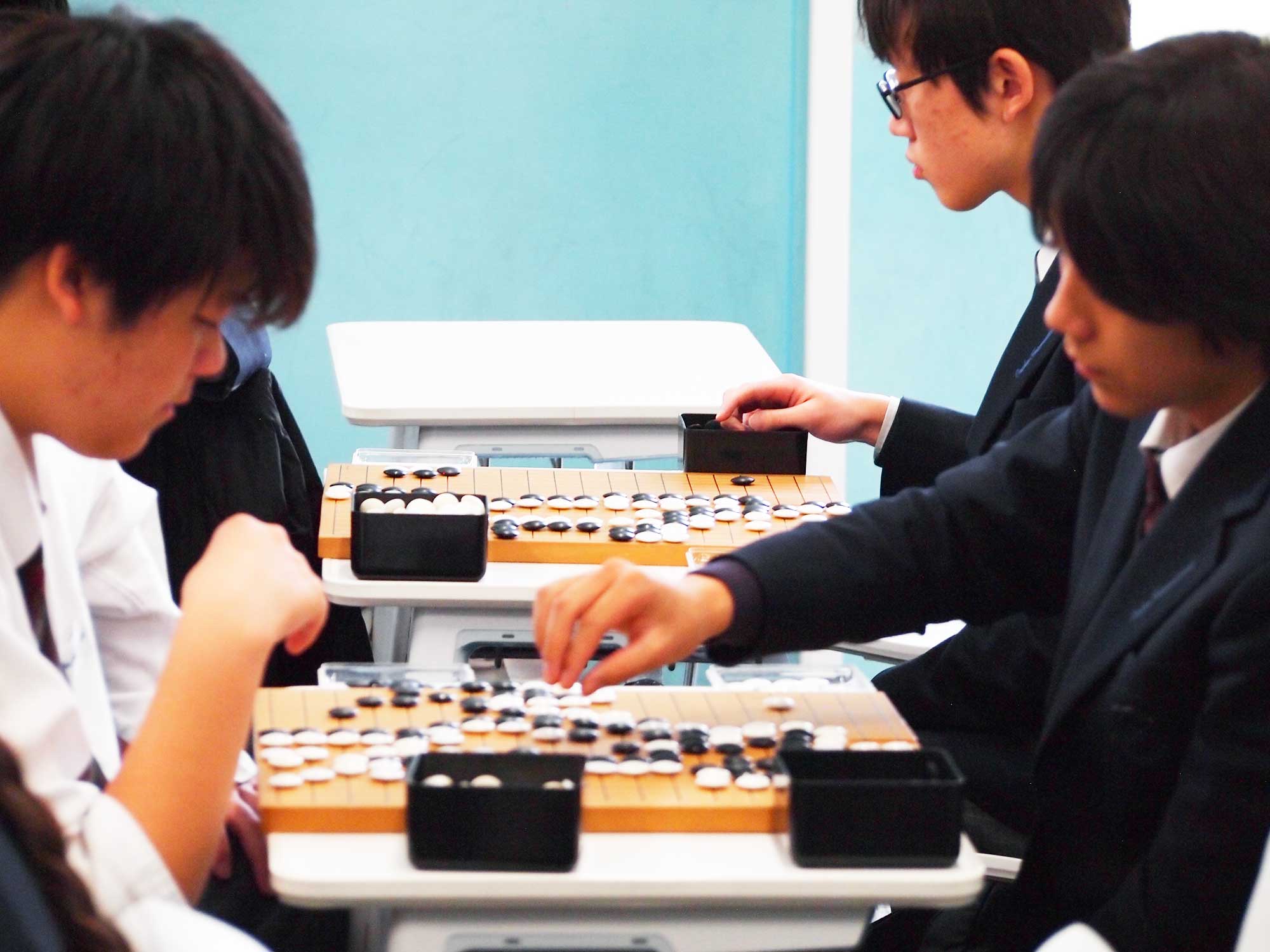 総合囲碁は、プロ棋士をお招きして、初心者でも楽しめる囲碁を毎週教わっています。先生の教え方の巧みさと生徒の柔軟でフレッシュな脳が組み合わさって、初めて石を持つ子もめきめきとその実力を伸ばし、囲碁の面白さ・奥深さに気付いてくれています。総合の時間でも先生がおっしゃるように、囲碁には落ち着いてしっかり考えることを求められます。この習慣に中学生時分に触れることができるのは今後の財産になるのではないでしょうか。