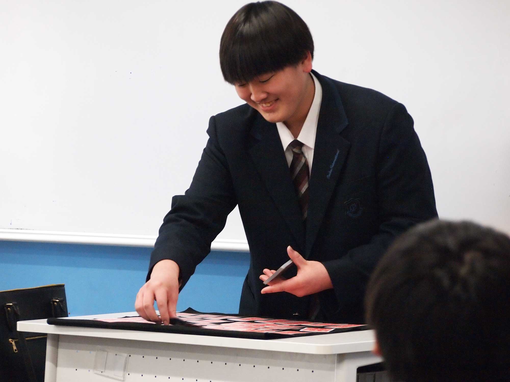 マジックの講座ではプロのマジシャンに直接教えていただきます。マジックを習得した後、みんなの前で実際に技を披露します。回を増すごとに手さばきが上手になり、学んだ技は年間に80種類ほどになります。たくさんの人に技を披露することで、観客の前で話すことができるようになりとても良い時間になりました。