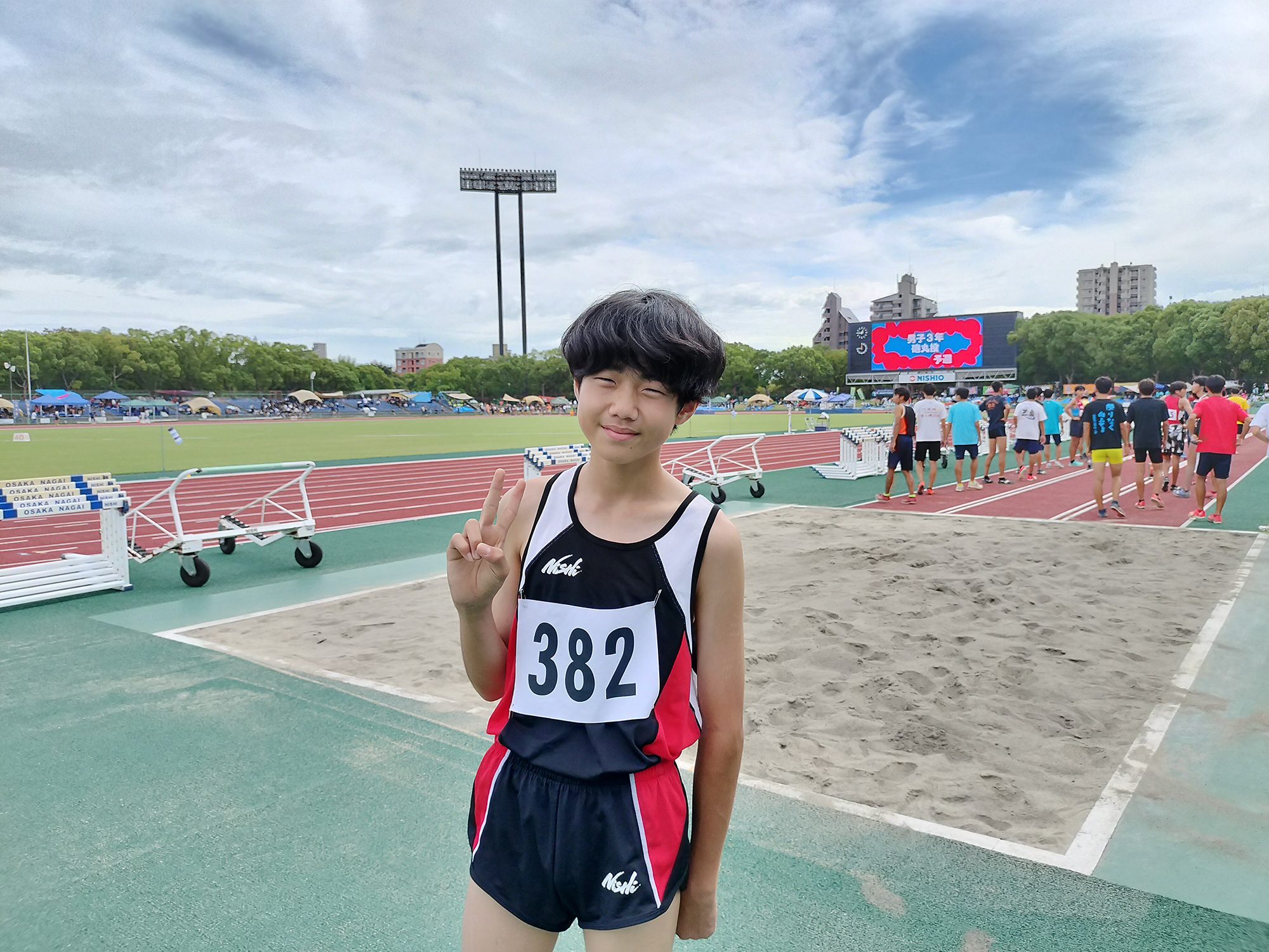 普段行われている北河内大会とは違い長居陸上競技場は電光掲示板に名前が標示され、改めて大阪府の大会に来たことを実感しました。