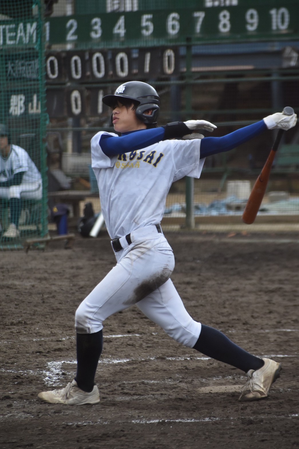 2試合目 郡山高校に先制点許し、迎えた6回裏田原がレフト前ヒット、伊賀のセンター前ポテンヒットで1点を取り返しました。そして、8回表岩下が、3人無失点で抑えいい流れをつくると、その裏宮本がライトオーバースリーベースヒットで追加点のチャンスでしたが打線をつなぐことができず、追加点とはなりませんでした。その後も得点を追加することができず10対1で敗戦となりました。