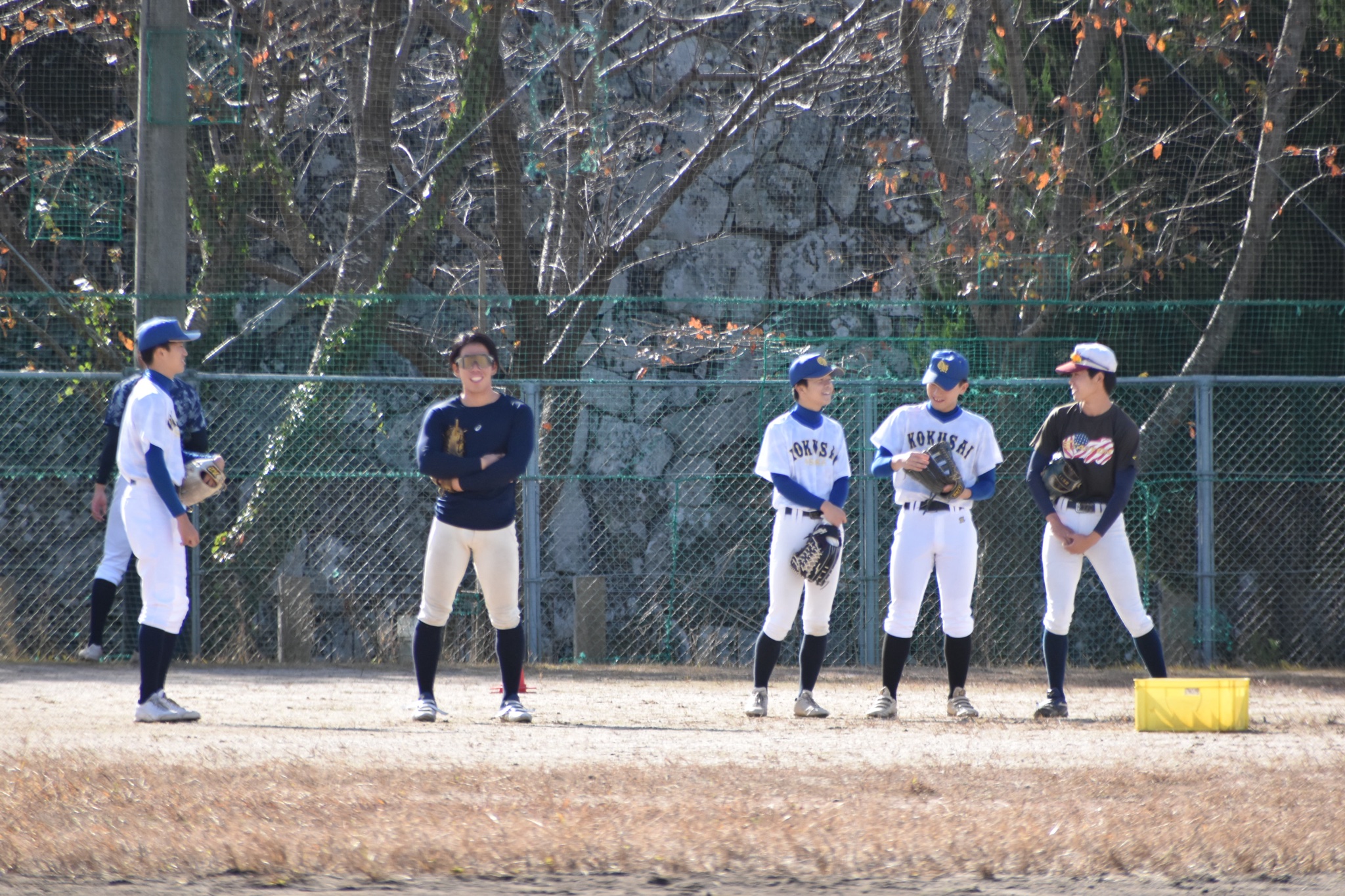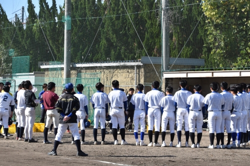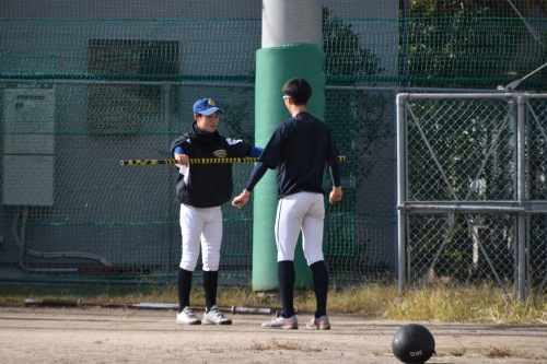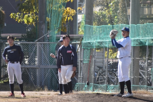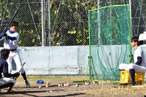 午前は、いくつかの班に分かれて大学生の皆さんと交流しながらバッティングやノックなどの練習をし、スイングスピードの測定もしていただき、普段経験できない貴重な練習をさせていただきました。