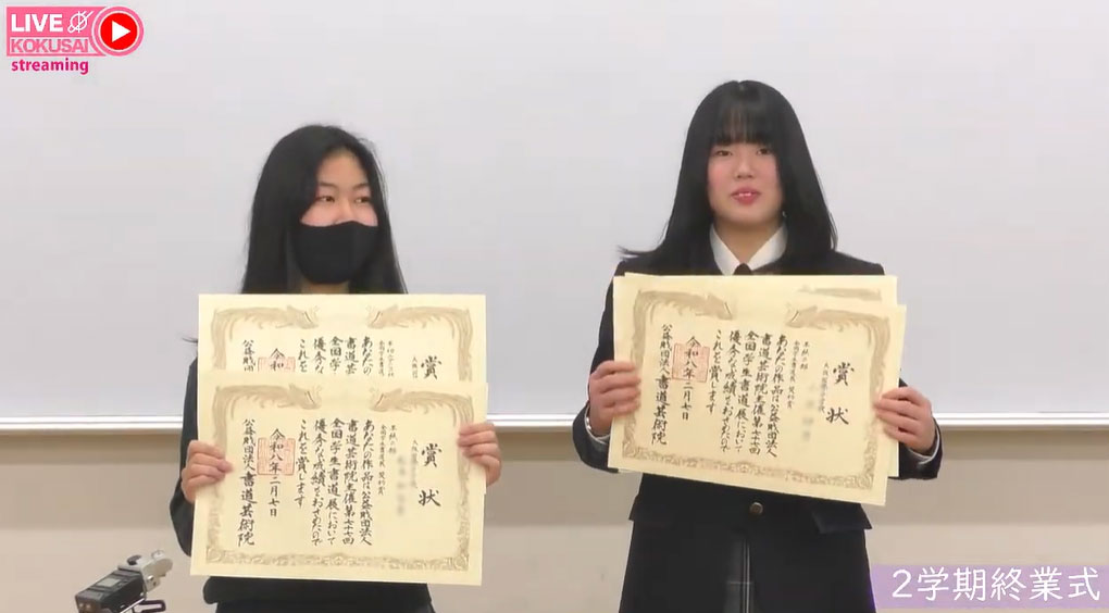 この度、第77回全国書道展において3年松本和佳奈、小伏卯乃が初出展で半紙の部、半切1/2の部の両作品とも見事に奨励賞を受賞しました。受賞作品は令和8年2月5日(木)~11日(水・祝)まで東京都美術館で展示されます。