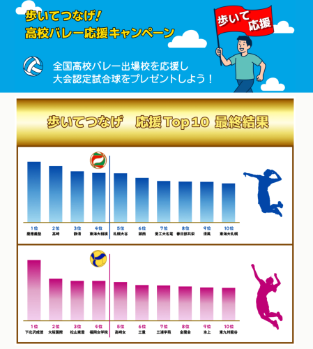 この度、三菱UFJ銀行(MUFG)のアプリを活用した企画、TORANOTEC株式会社主催「歩いてつなげ!高校バレーボール応援キャンペーン」において、本校が女子参加52校の中で、全国第2位という素晴らしい結果をおさめることができました!