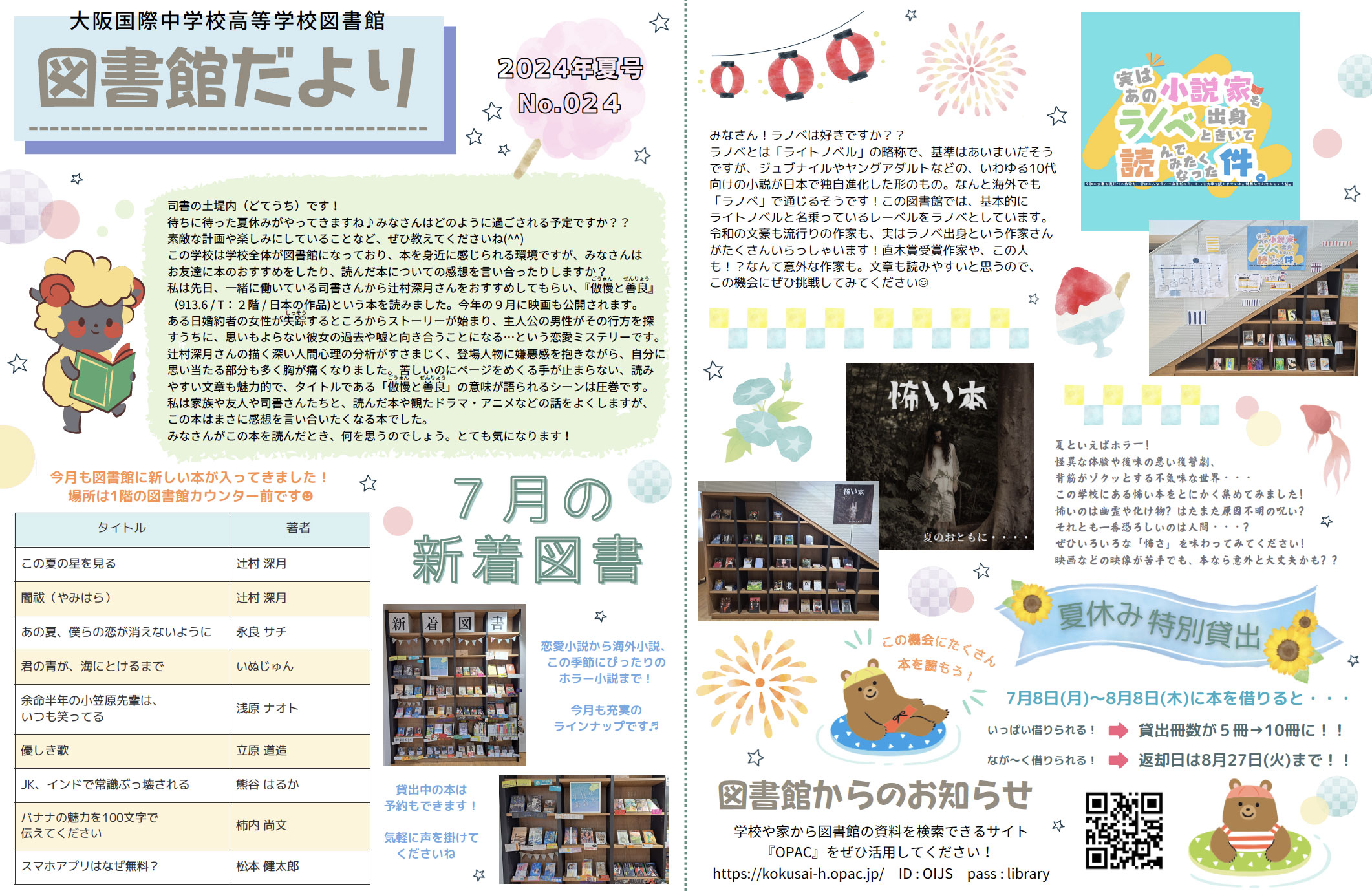 HPをご覧いただいている皆さんも、ご来校の際はぜひ、1階の図書館カウンターで司書さんとの交流をお楽しみください。