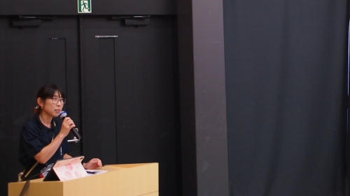 並行して、国際バカロレアコースの説明会が開催されました。卒業生の堤千丈さん、そして在校生の中村カリナさんと中村元信さんによる体験談も催されました。