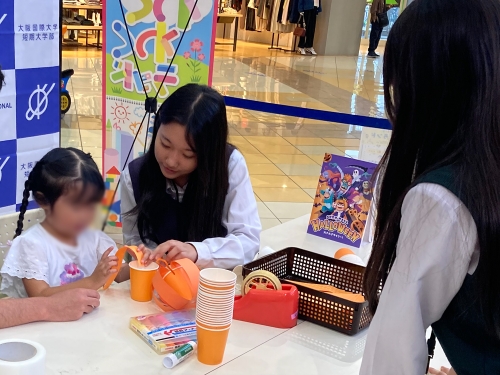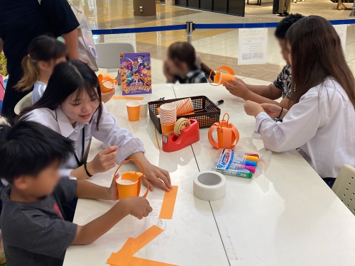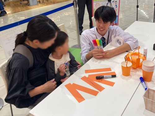 幼児保育進学コース 2025.10.20 大日イオン 1階 サニーコートにて 今年度2回目の「わくわくランド」を開催しました。 「ハロウィンカップを作ろう」と題して、今日までに幼児保育進学コースの生徒は準備をしてきました。 笑顔で取り組み、楽しい笑い声のあふれる工作体験コーナーになりました。 参加してくれているお友達が工作をしやすいようにそっと手を添えたり、さりげなく寄り添い、わかりやすく丁寧に教えることが出来ました。 本日は141組 207人のお友達に参加していただきありがとうございました。