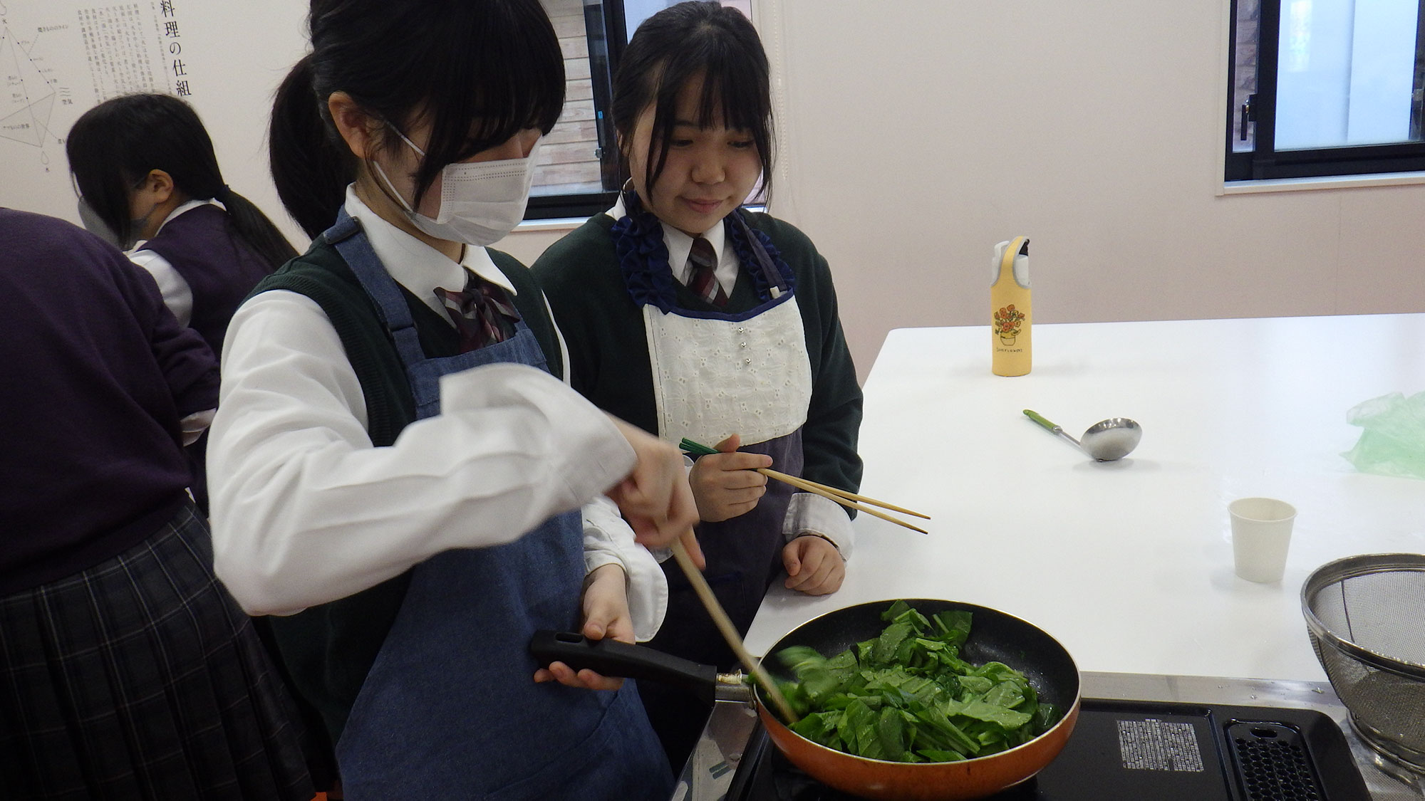 ボランティアさんと色々なお話をしながら一緒に調理をさせていただく機会は生徒たちにとっては大切な学びの場。まさにプチ民泊体験です。ボランティアさんも中学生と一緒に作業することを楽しみにしていただいており、大変嬉しく思っております。
