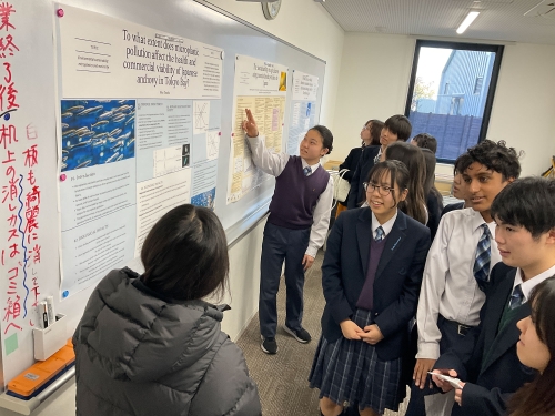 12月13日(土)に、IB ペアレンツデイが実施されました。当日は、2年生によるコラボレーティブ・サイエンス・プロジェクト(Collaborative Science Project:CSP)の発表およびTOKエキシビション、3年生によるエクステンデッド・エッセイ(Extended Essay:EE)のポスター発表を行い、保護者の皆さまにご覧いただきました。