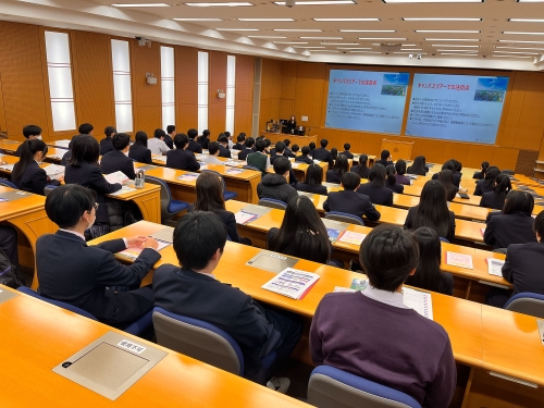 大学訪問では、講義やキャンパスツアーなどをしていただきました。講義では普段の学校とはまた違った専門的な授業で難しい面もあれば、面白い面もあり、生徒の皆さんは興味深く聞いていましたね。また、大学の学生さんがキャンパス案内や研究室案内をしてくださり、普段見られない設備を見られたり、学生さん目線でのお話も生徒にはいつも好評です!