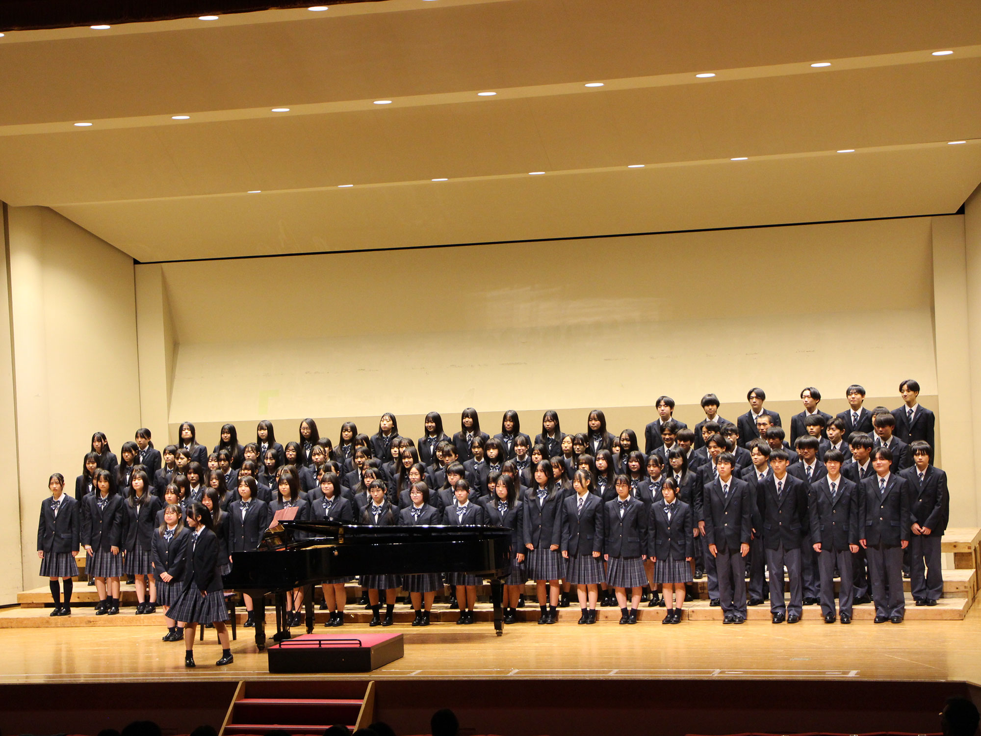 舞台の上に立つということはその前の準備や入退場の段取りを含むものであるということが学べた貴重な機会でした。緊張しながらも練習の成果を発揮する姿に、1年の成長が感じられたのではないでしょうか。