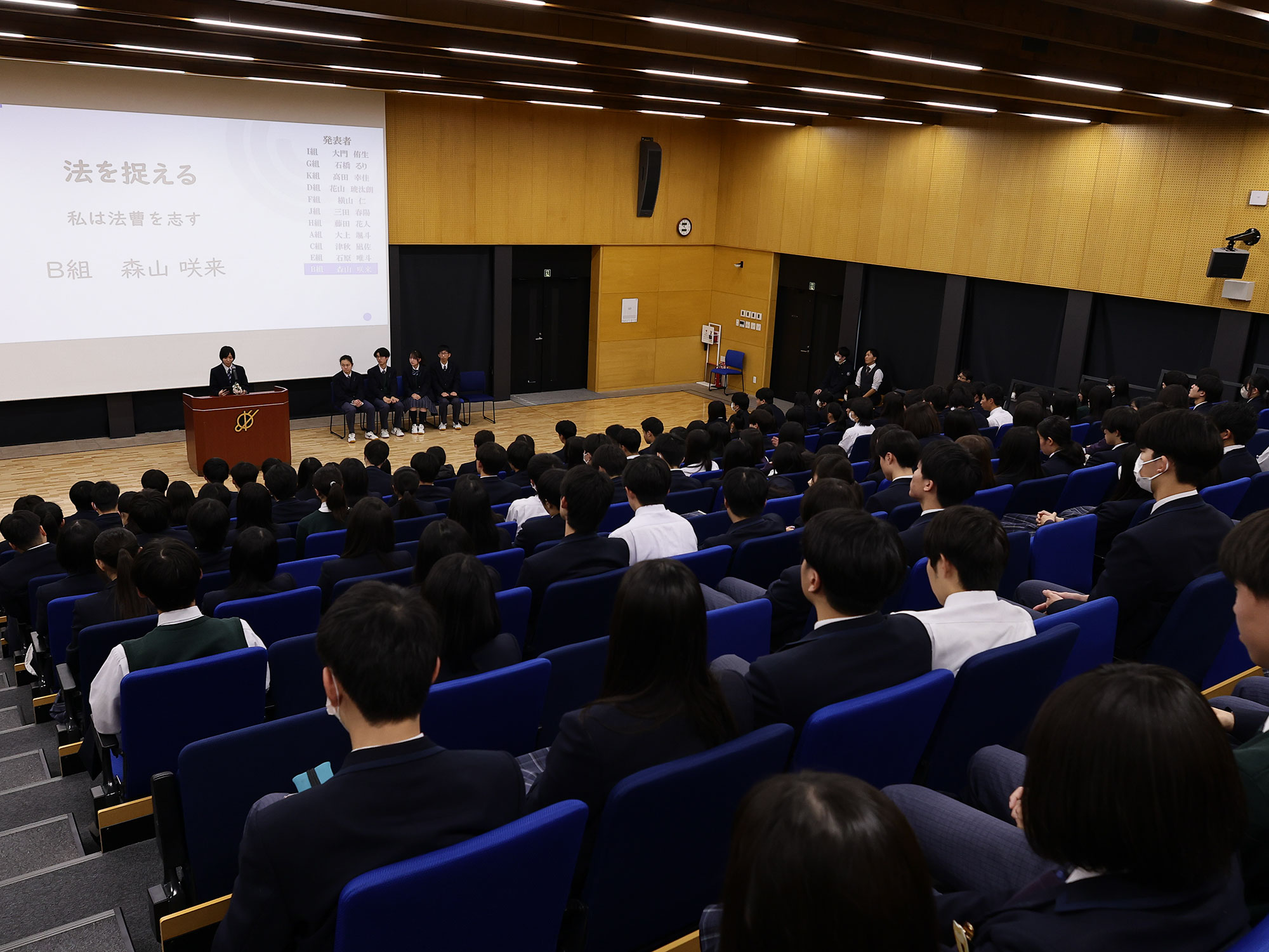 入学以来、2期生の生徒達は「志」について考えてきました。2年生で立志式を行い、2000字の志論文を完成し発表しました。その後も「志」の実現に向け、努力を続けました。そして、この日2期生が一堂に会し、各クラスの代表者が威風堂々とスピーチをしました。