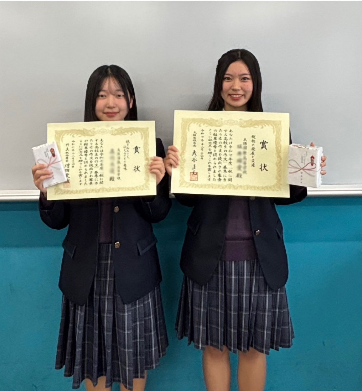国税庁主催で毎年行われている「税に関する高校生の作文」にて、本校の高校2年I組の坂井瑠愛さんが大阪国税局長賞、高校2年K組の髙内未優さんが門真税務署長賞を受賞しました。