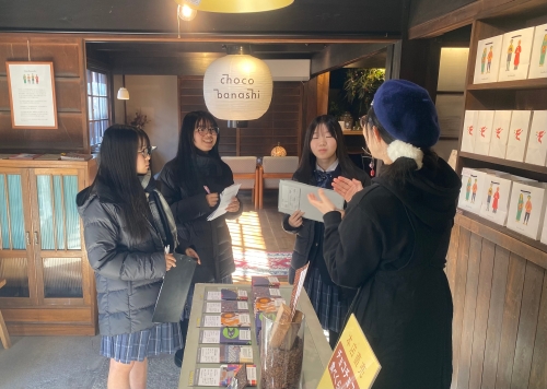 店舗研修ではお店の経営や接客の心構えなどを教えていただき、実際にお客様がいる店舗内で活動を行いました。初めは緊張していた生徒たちでしたが、次第に元気に明るい表情で取り組むことができるようになりました。生徒たちはとくに商品陳列の工夫に興味を持っていました。