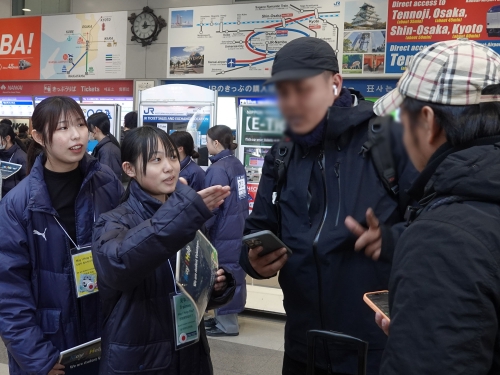 このボランティアは、JR関西空港駅で外国人観光客の方々に目的地への行き方や切符の買い方などをサポートする活動です。