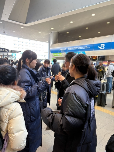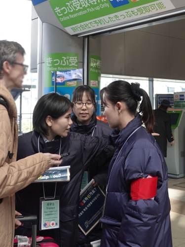 また、春節を控えた時期ということもあり、中国や韓国からのお客様が多くいらっしゃいました。韓国語や中国語が話せる生徒たちは、語学力という自分の強みを存分に発揮!大学生から頼りにされる場面が多々ありました。