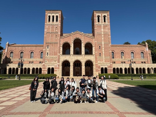 昼食後は、UCLAに在学している日本人学生の方にキャンパスツアーをしていただきました。広大なキャンパスには歴史ある建物や緑豊かな庭園が広がり、その規模の大きさに圧倒されました。芝生の上で寝転びながら友人と談笑する学生たちの姿を見て、生徒たちはUCLAでの学生生活に憧れを抱いている様子でした。