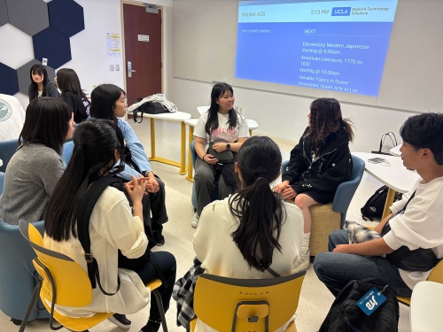 キャンパスツアーの後は、中国、台湾、シンガポールからの留学生とのディスカッションの時間が設けられました。UCLAでの生活はもちろん、英語の学習方法やおすすめのレストランまで、多種多様な質問にざっくばらんに答えていただき、生徒たちの海外留学への関心がさらに高まりました。