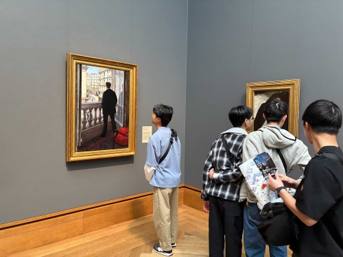 本日は観光バスに乗り、映画の街ロサンゼルスを観光しました。まず訪れたのは、世界有数の富豪とされる石油王J・ポール・ゲッティが収集した美術品を展示する「ゲッティ・センター」です。ロサンゼルスを一望できる小高い丘の上にあり、セレブが住むとされる豪邸も見渡すことができました。ゴッホの「アイリス」をはじめ、膨大な数の美術品を無料で鑑賞することができ、多くの来館者でにぎわっていました。
