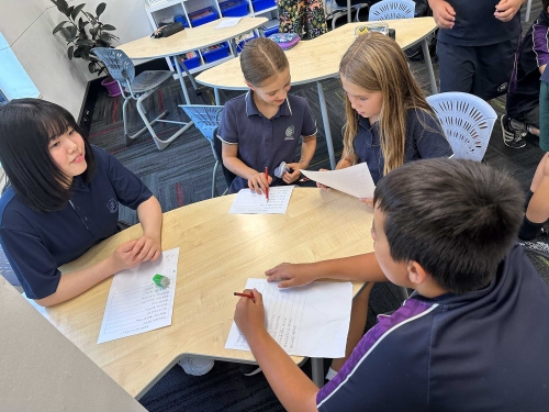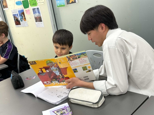 途中には、年長さんや小学2年生、5年生の日本語の授業にお邪魔して、お姉さん、お兄さんとして頑張っていました。