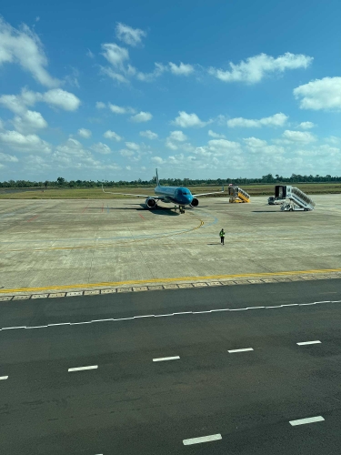 本日は移動日でした。まずは朝食をいただき、バンメトート空港へ移動。飛行機に乗り込んで、ハノイまでは約2時間のフライトです。ハノイ到着後は、空港で昼食を取りました。ここでも翻訳アプリが大活躍したようです。空港で服部先生とはお別れです。Never Give Upという言葉を先生は最後に生徒に話されていました。困難は多く、失敗もあるだろうけれども、一度や二度で諦めてはいけない。そんな先生からのメッセージを、生徒たちも真摯に受け止めていたようです。